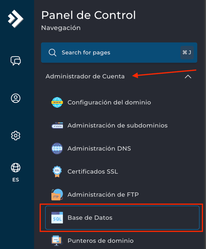 - Haz clic en Base de Datos.